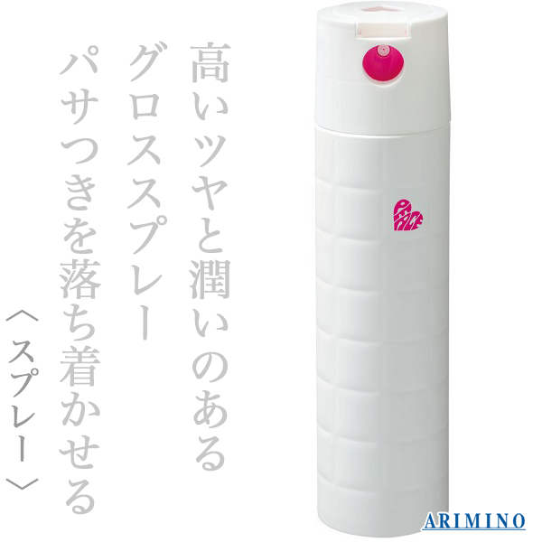 缶を立てたまま髪全体にスプレーし、手で整えます。
