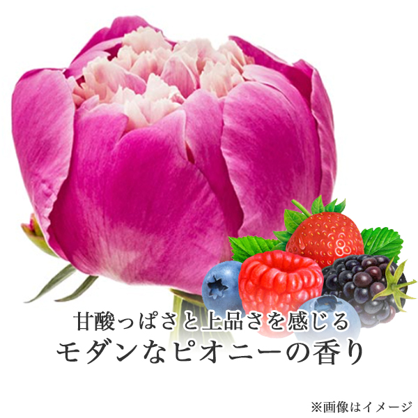 甘酸っぱいミックスベリーと上品なフローラルブーケをパウダリーノートが温かく包み込むモダンなピオニーの香り