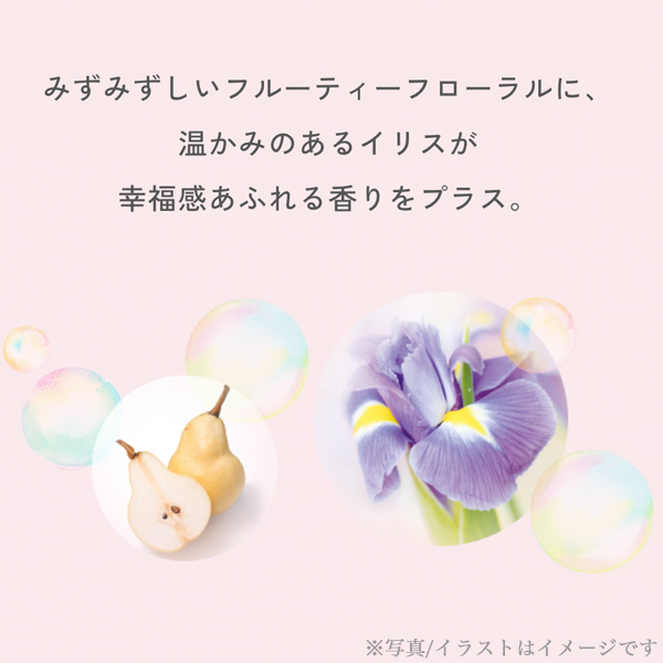 みずみずしいフルーティーフローラルの香りに、温かみのあるイリスをプラス。