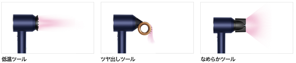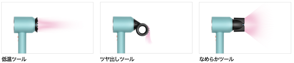 取り付けられたアタッチメントを瞬時に認識し、前回使用時の風速・風温に自動で調節します。