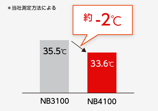 ![]() | 従来より約2℃低い冷風で、更に上質な仕上がりに 従来品(※1)の冷風温度より約2℃低い冷風(※2)を放出するため温風と冷風の温度差により、上質な仕上がりに導きます。 ※1 NB3100 ※2 環境温度30℃の場合 |
