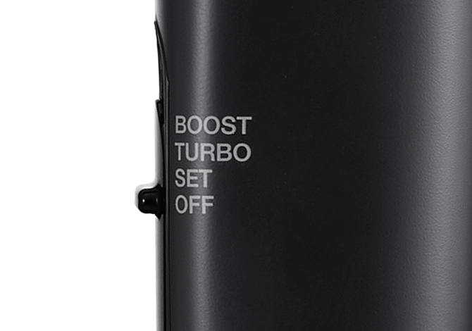 ![]() | 3段階の風 スライド操作で風の勢いを調節。 ・BOOST(強風) ・TURBO(中風) ・SET(弱風) |